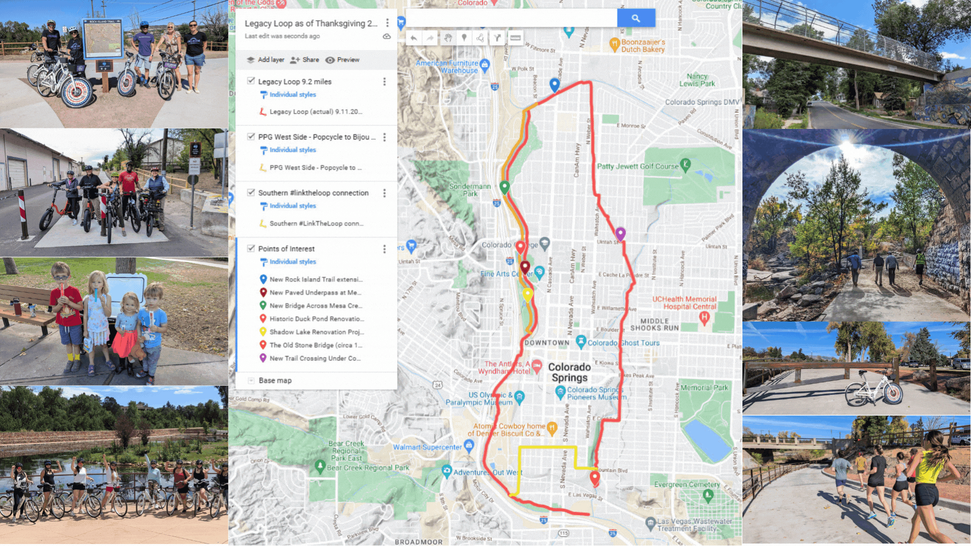 (The 9.2 mile completed portion of the Legacy Loop is shown along with the yellow #linktheloop connection that works well right now.)