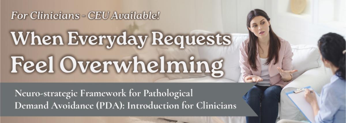 March 10, 2026 – Understanding Pathological Demand Avoidance (PDA) & Trauma: Caregiver & Clinical Tools: A virtual training designed for clinicians with practical strategies to support children with PDA traits and trauma histories.