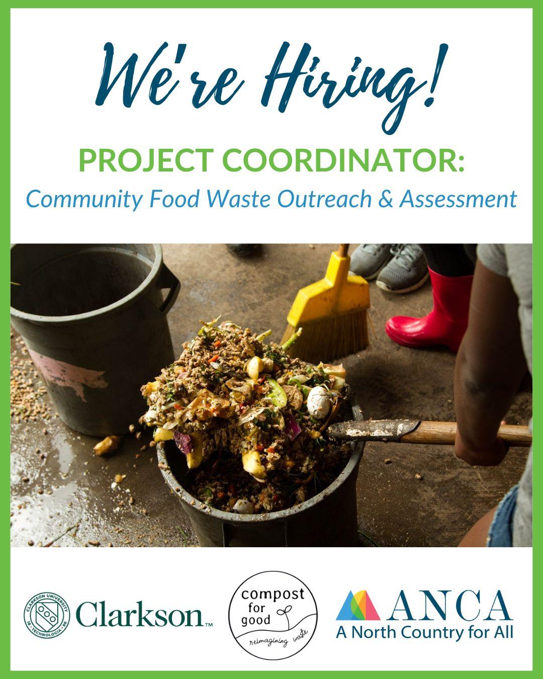 In partnership with Clarkson University, ANCA's Compost for Good program is seeking a project coordinator to implement food waste reduction and recycling grants in North Country communities. This position supports federal grant project goals including community outreach, communications, and food waste assessments.