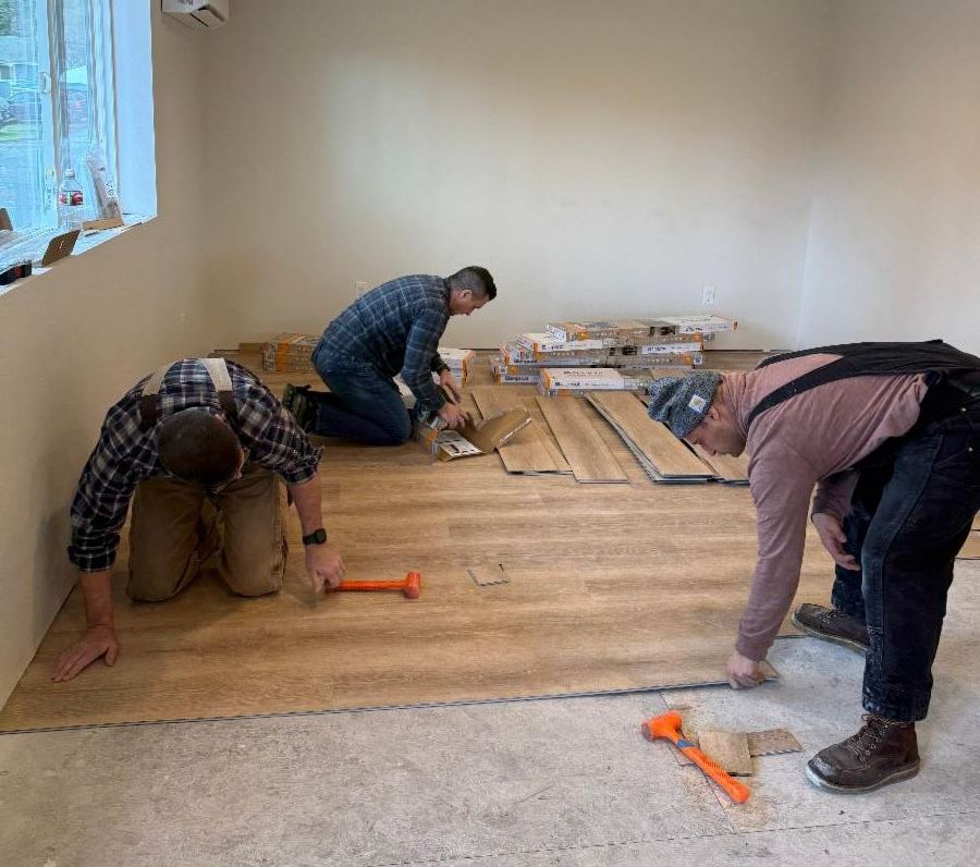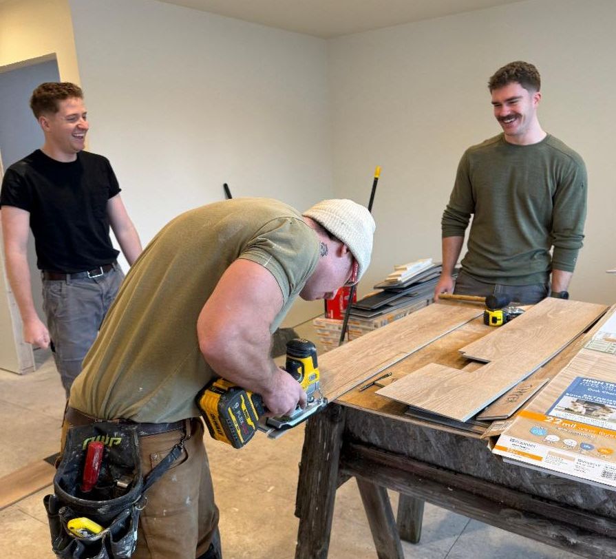 The U.S. Coast Guard Air Station Port Angeles will be helping throughout the month, lending their time and talent to install flooring and keep the momentum strong as we finish Ketchum Cottages.