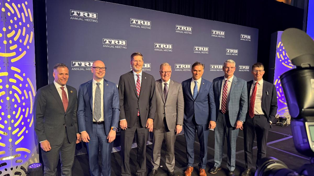 | | | USDOT Administrators Outline Research and Innovation Priorities at TRB | | From Left: Marc Molinaro, Administrator of the Federal Transit Administration; Jonathan Morrison, Administrator of the National Highway Traffic Safety Administration; Sean McMaster, Administrator of the Federal Highway Administration; David Fink, Administrator of the Federal Railroad Administration; Paul Roberti, Administrator of the Pipeline and Hazardous Materials Safety Administration; and Derek Barrs, Administrator of the Federal Motor Carrier Safety Administration | |