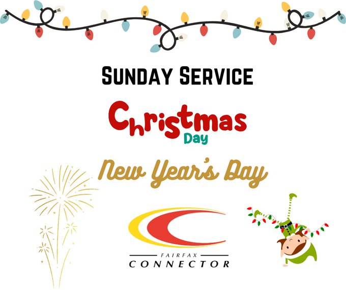 Fairfax Connector will operate on a modified schedule on Christmas and New Year's Day.