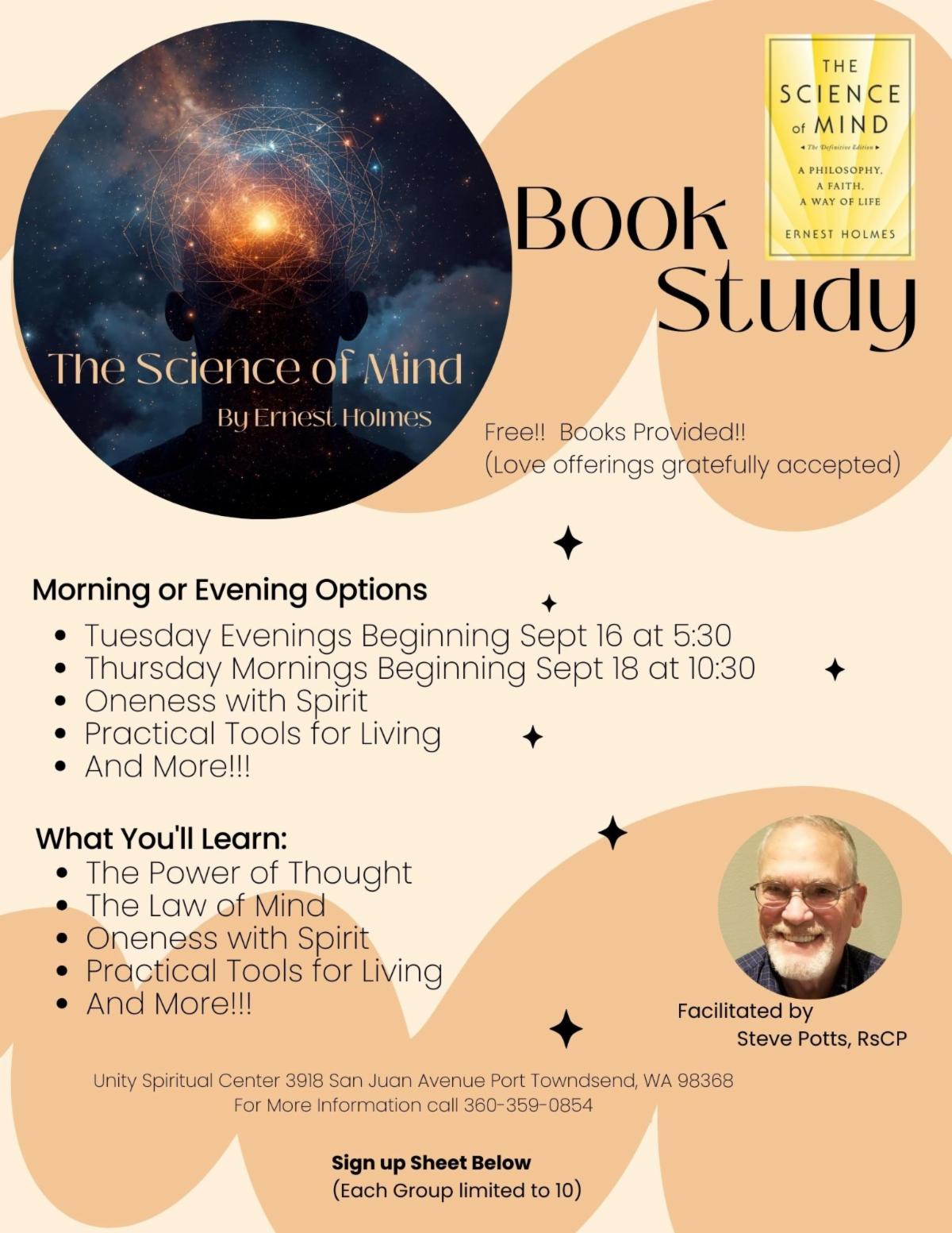 Science of Mind will be offering a book study group (books provided)
