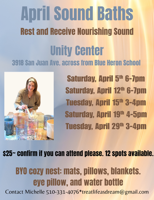 Sound Bath April dates below on flyer.