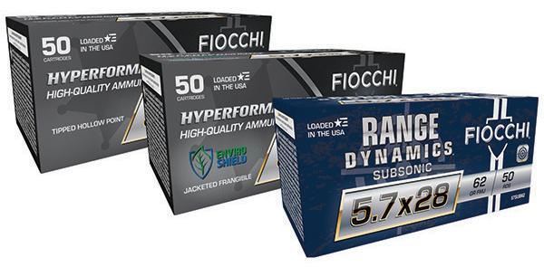 Fiocchi’s newest extensions to the popular Hyperformance and Range Dynamics lines — 5.7 x 28mm! This high-velocity, low-recoil, bottle-necked round has a history of personal defense carbine and semi-automatic pistol use. The Hyperformance offering leads the pack with a non-toxic, 35 grain jacket frangible and a 40 grain tipped hollow point delivering top ballistic performance. Rounding out the pack is the Range Dynamics Subsonic, delivering a 62 grain FMJ for suppressed fun at the range. Dominance perfected, only from Fiocchi! |