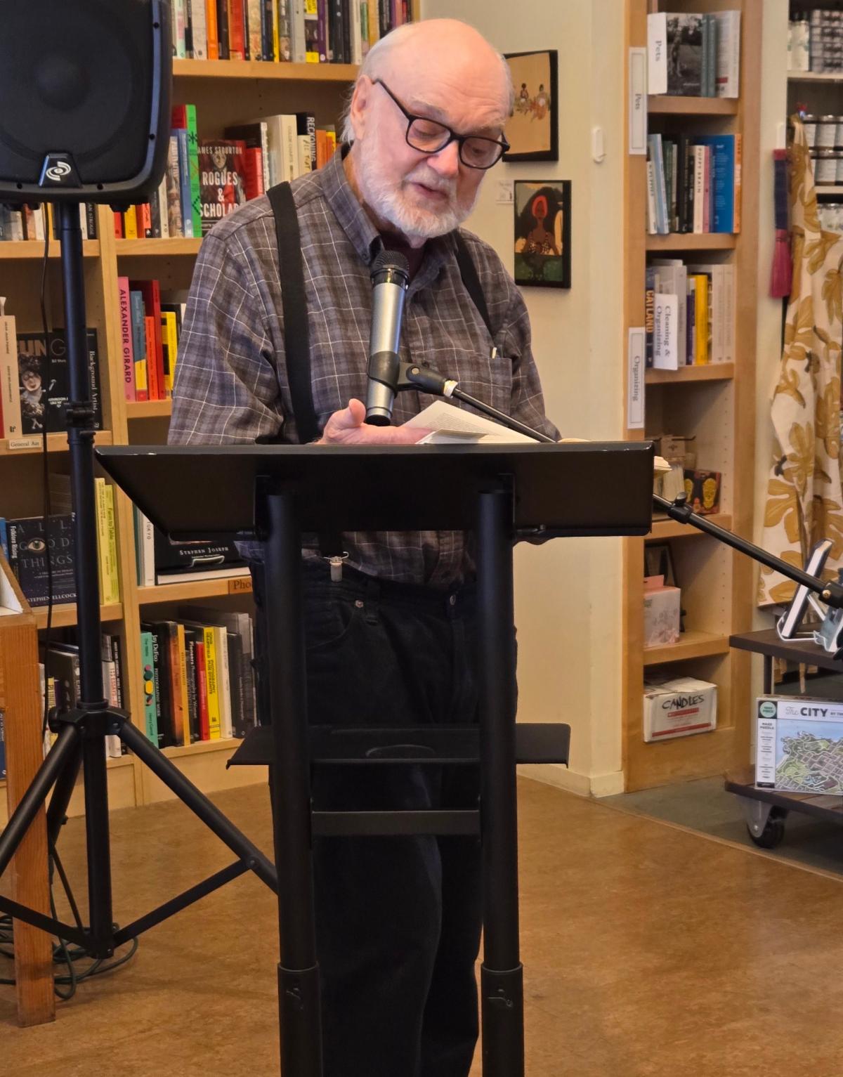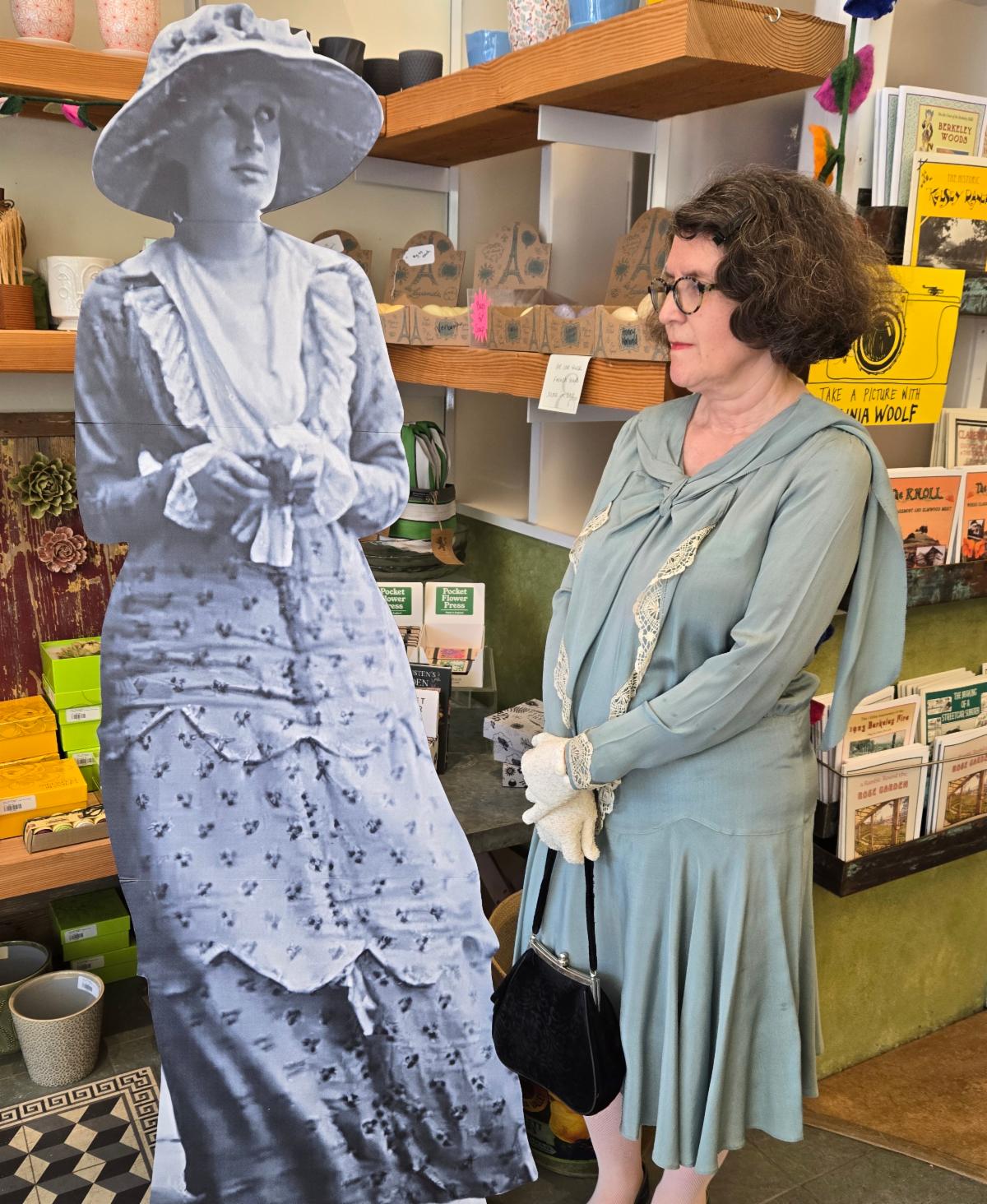 It was a grand day at the bookstore on May 14 when we celebrated the 100th anniversary of the publication of Mrs. Dalloway by Virginia Woolf. The highlight was the day-long reading of the book, which featured the participation of customers, bookstore staff, former Mrs. Dalloway's owners ANN LEYHE and MARION ABBOTT, and others. The reading was anchored by our own rockstar actor, orator, and reader extraordinaire THOMAS LYNCH (below left). We also held a period costume contest with a $50 gift certificate prize, which was won by MARIA BRANDT (below right). Discounted Mrs. Dalloway merchandise and refreshments were also offered during the festivities.