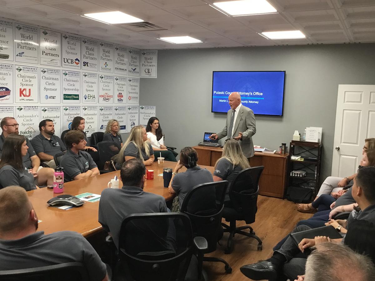 Pulaski County Attorney Martin Hatfield spoke to the 2024 Somerset Pulaski County Chamber Leadership Class. The class took a deep-dive into the drug epidemic and how it is being managed from every side. | |