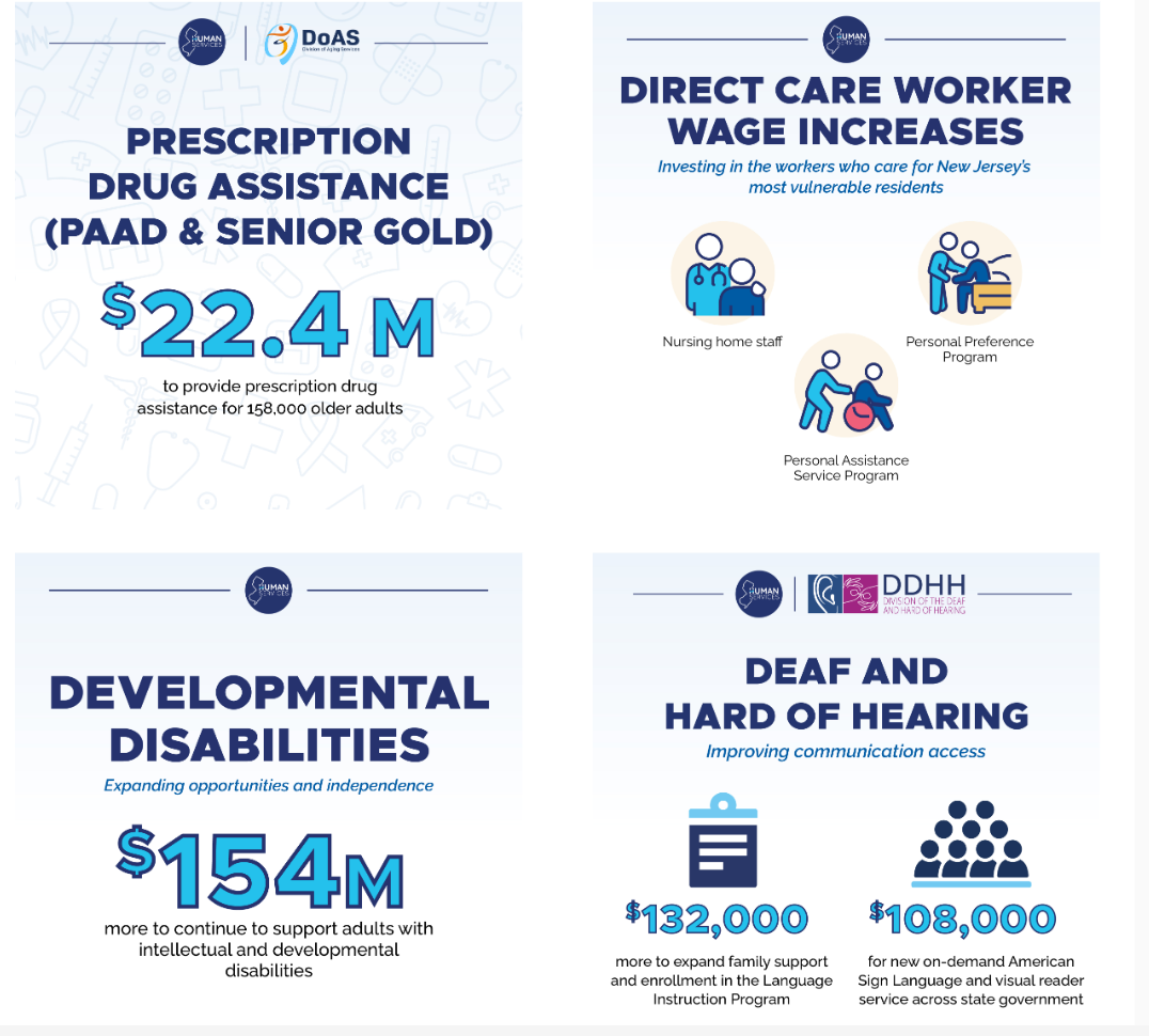 Governor Mikie Sherrill’s budget plan for the fiscal year starting July 1 prioritizes several key New Jersey Human Services initiatives. The proposal includes more than $34 million to offset the upcoming federal cuts, minimize the disruptions and help residents meet new enrollment requirements. If passed, this will help secure several programs serving older residents: