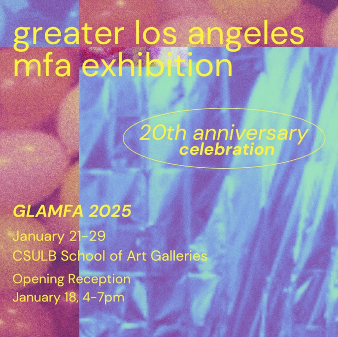 California State University, Long Beach is thrilled to announce the 20th Annual Greater Los Angeles MFA Exhibition (GLAMFA), presented by the School of Art graduate students! This milestone exhibition celebrates two decades of showcasing exceptional work by MFA students from graduate programs across Southern California.