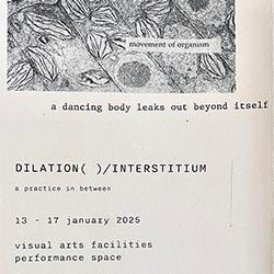 DILATION( )/INTERSTITIUM is a durational sub/merging of light movement, & image. in this study, dancer & mfa candidate erika roos considers how the fluidity & disintegration of time shape the in-betweenness of bodily forms.