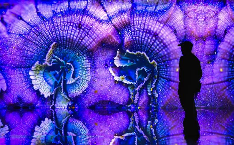 Superradiance. Embodying Earth is a multiscreen video and sound installation by artists Memo Akten and Katie Peyton Hofstader. Inspired by conversations between the artists and Scripps researchers, this work explores the complex interactions between land, ocean and atmosphere that shape our living planet by interweaving dance, poetry, music and generative imagery with artificial intelligence.