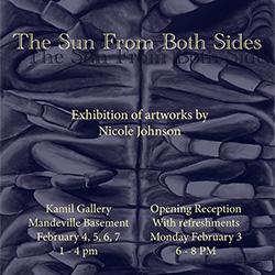 Gallery exhibition of artworks by Nicole Johnson. Nicole's work aims to capture sentimental and often poignant moments with the use of black and white values in her charcoal drawings. She uses feminine subjects to convey ideas of nostalgia, vulnerability, and care for those represented in her works.