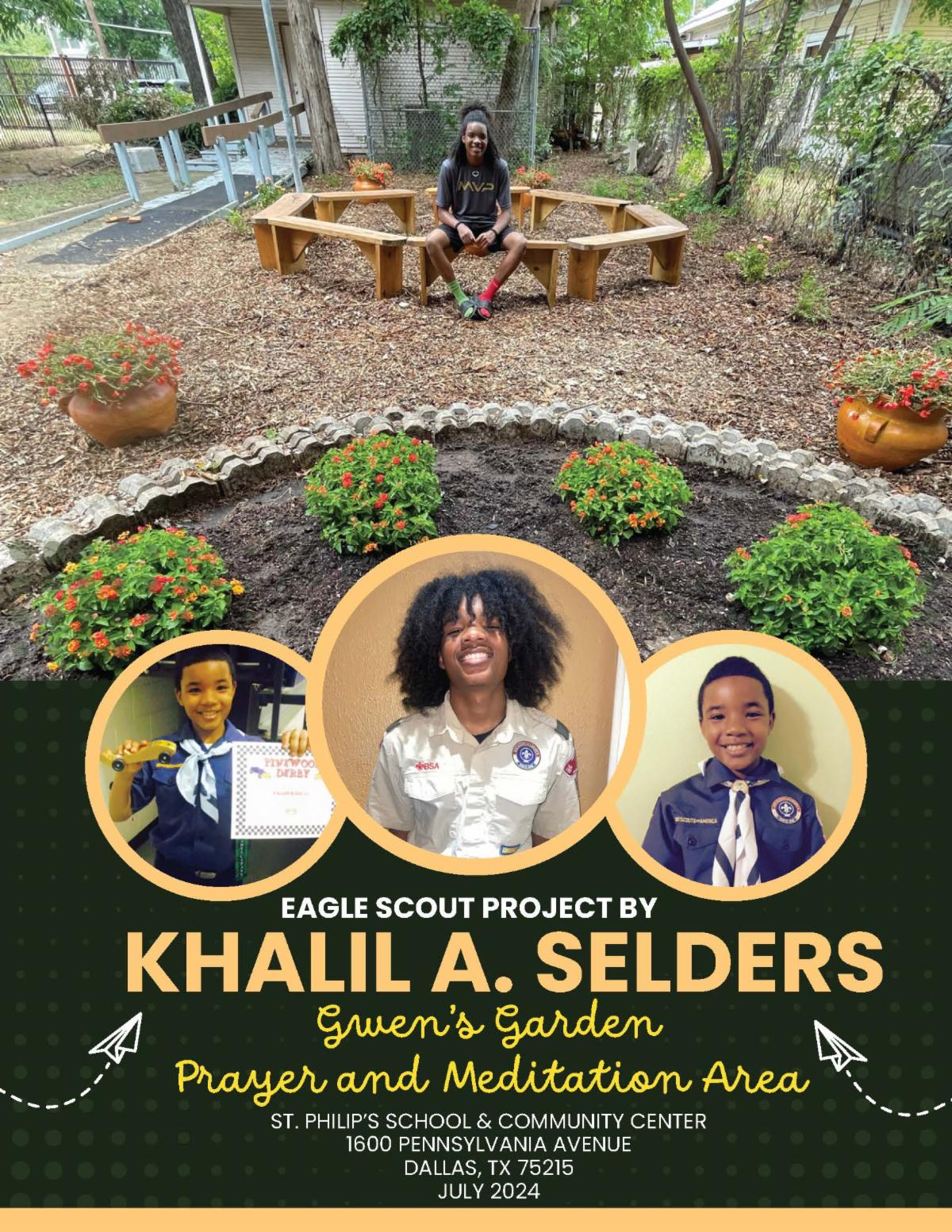 St. Philip’s alumnus Khalil Selders is making a significant impact in his community through his Eagle Scout project by revitalizing Gwen's Garden at St. Philip’s School and Community Center. The project honors the late Gwendolyn Satterfield Barjon, a former St. Philip’s principal and passionate gardener, ensuring her legacy of love and growth continues. Khalil, who experienced Ms. Barjon’s influence as a student, collaborated with St. Philip’s leadership and her family to incorporate their vision and preferences into the project.
