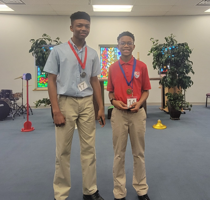 Special congratulations to our spelling bee winners: Lower School's first-place winner, Brielle Handy, and second place winner Ashton McDow. Middle School's first place winner, Naiel Wheeler, and second place winner Jonathan Lax.