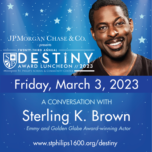 JPMorgan Chase & Co. presents the 23rd Annual Destiny Award Luncheon on Friday, March 3rd. The extraordinary event will feature a conversation with Primetime Emmy Award and Golden Globe -winning actor Sterling K. Brown. Brown is known for his roles as Christopher Darden in F.X., limited series “The People v. O.J. Simpsons: American Crime Story” and Randall Pearson in the NBC drama series “This is us.”