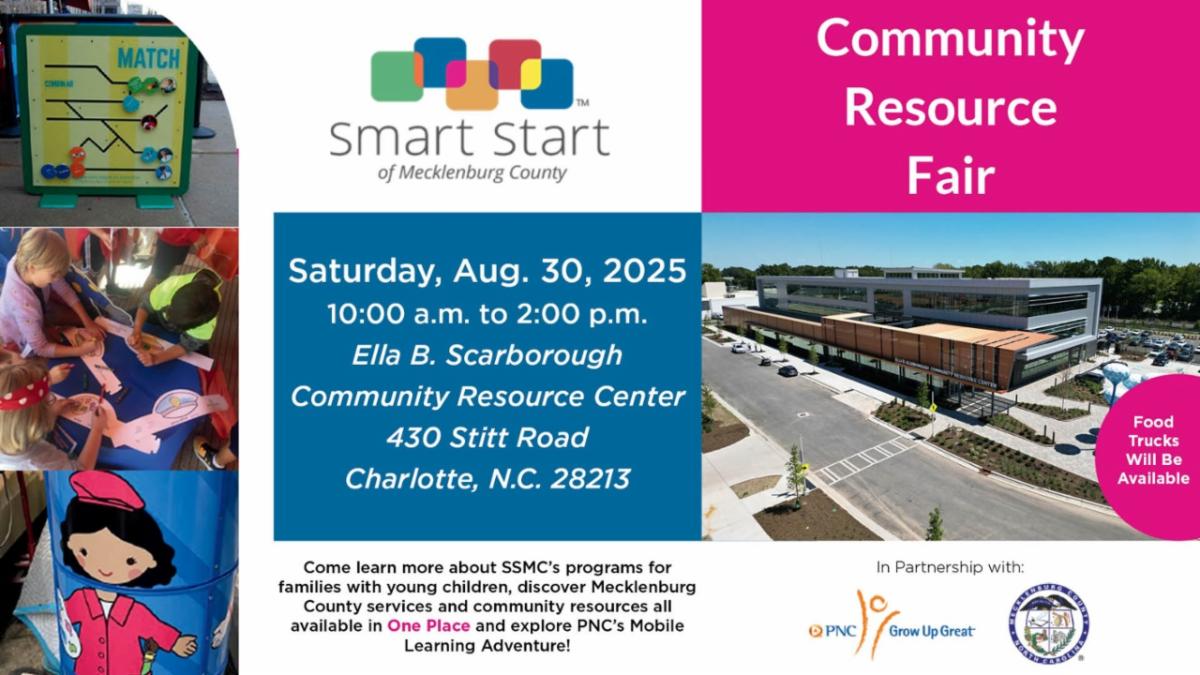 Come learn about Smart Start of Mecklenburg County programs for families with young children, discover Mecklenburg County services and community resources all available in one place, at the Ella B. Scarborough Center, and explore PNC's Mobile Learning Adventure!