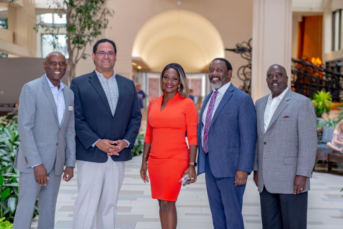 In this photo from left to right, are: Board member Derek Burke, President Alfred Arzuaga, Ericka Dunlap, ONIC's Board Chair, Orange County Mayor Jerry L. Demings, and Board member Eddie Brown. | |
