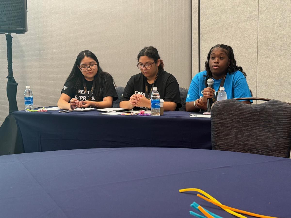 In this photo from left to right, are: Naidelyn Neri, Hollowbrook youth leader, Mia Rivera, Hollowbrook youth leader, and Shamaya Hagans, Boca Club youth leader. | |