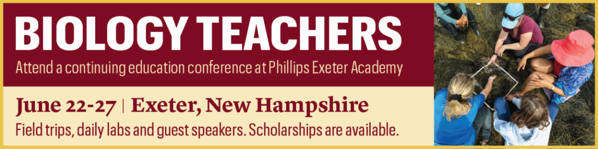 Registration is now open, and limited scholarships are available for public school educators. Learn more at https://exeter.edu/biology-institute-at-exeter/