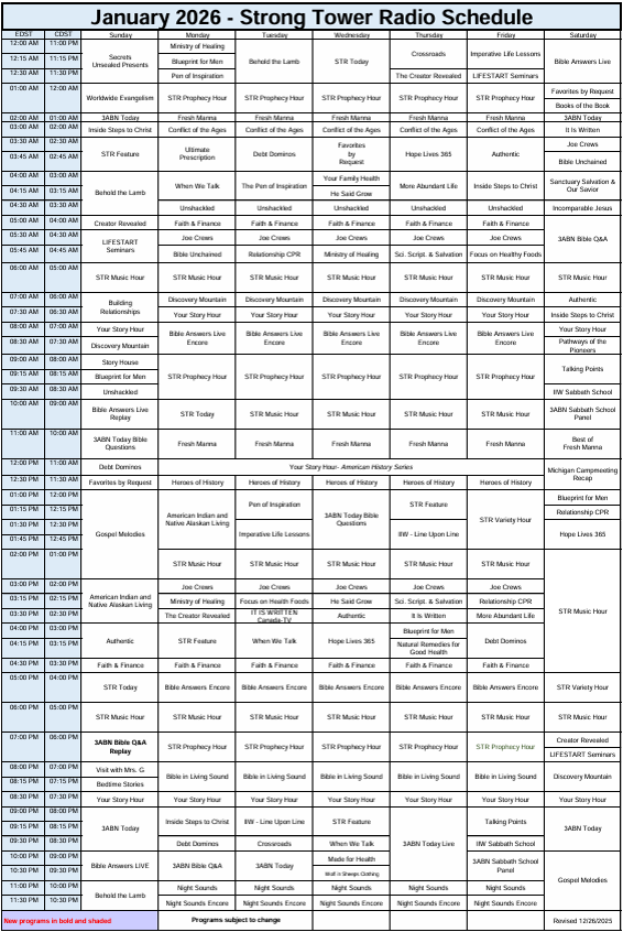 Many will take their stand under Prince Emmanuel's banner, and many are connecting with Jesus through radio. Thank you for upholding Strong Tower Radio in prayer as we broadcast the everlasting gospel in the context of the three angels' message of Revelation 14:6-12 every single day of 2026!