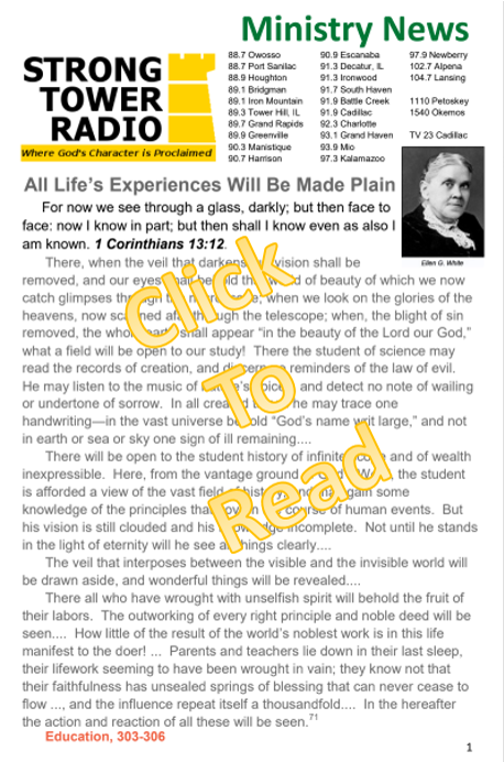 Strong Tower Radio has preserved Pastor Fred's past blind camp devotions. They air each Friday at 1 pm and Sabbath at 5 pm only on Strong Tower Radio (STR) stations, STR apps, and STR.fm on your computer.