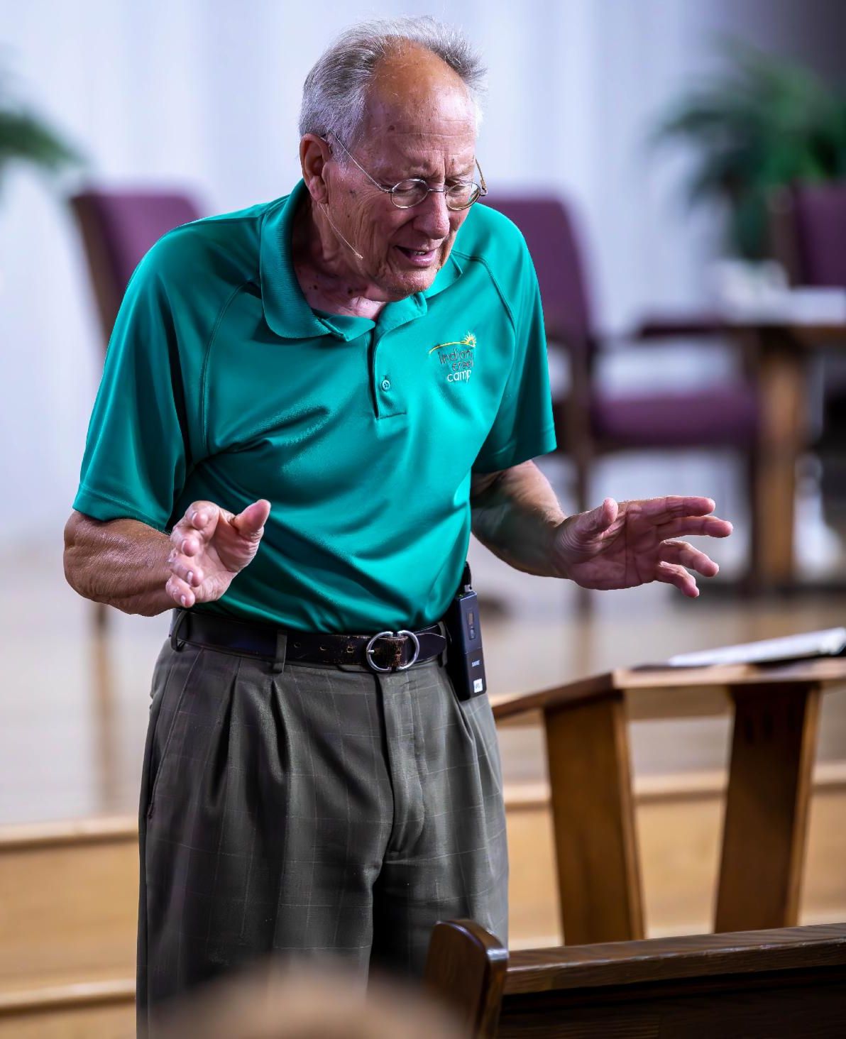 Pastor Fred Calkins conducting a blind camp devotional