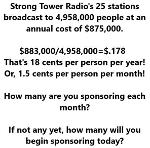 Thank you for listening to, supporting, and praying for Strong Tower Radio, "Where God's Character IS Proclaimed!"