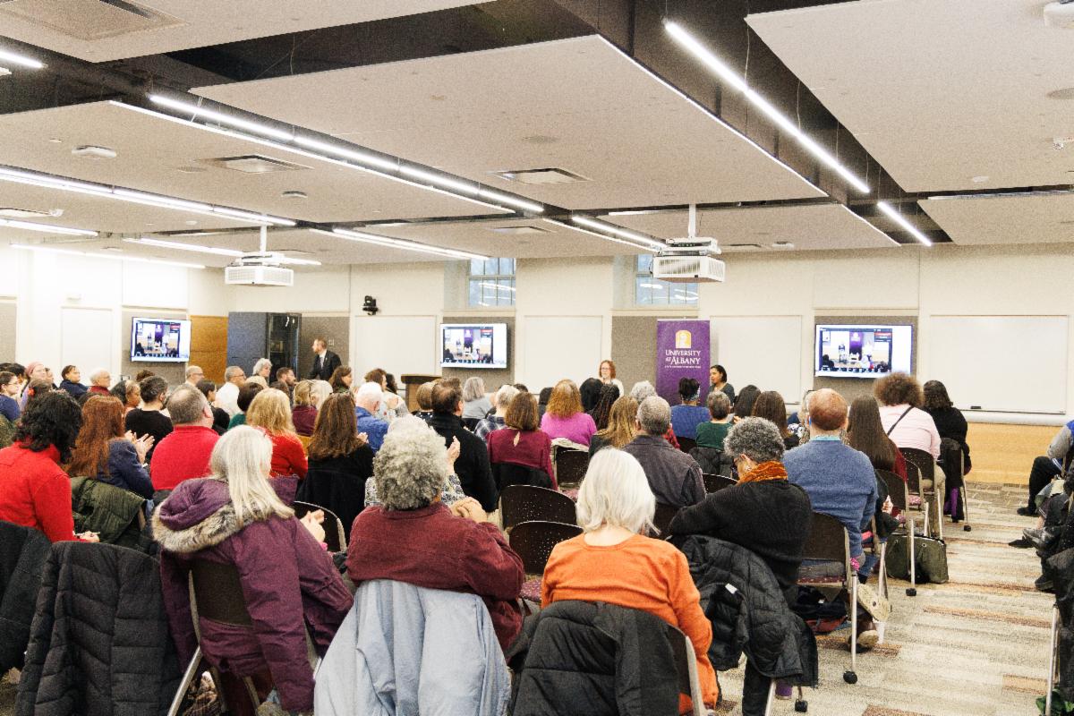 DEC Commissioner meets with weather and climate experts... Dr. Jie Zhang of the Atmospheric Sciences Research Center (ASRC) at UAlbany gives new DEC Commissioner Amanda Lefton, a UAlbany alumna, a tour of the University's mobile laboratory which is equipped with research-grade instruments that can measure air pollutants. During her visit to ETEC on December 30, the commissioner and her team had a chance to speak at length with other members of ASRC, the Department of Atmospheric and Environmental Sciences, the State Weather Risk Communication Center, and the NYS Mesonet. |