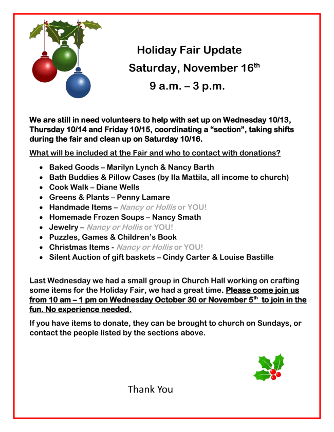 Right now there are openings in Diaconate, Educational Ministry, & Outreach Committee. And a golden opportunity for a Vice-Moderator.