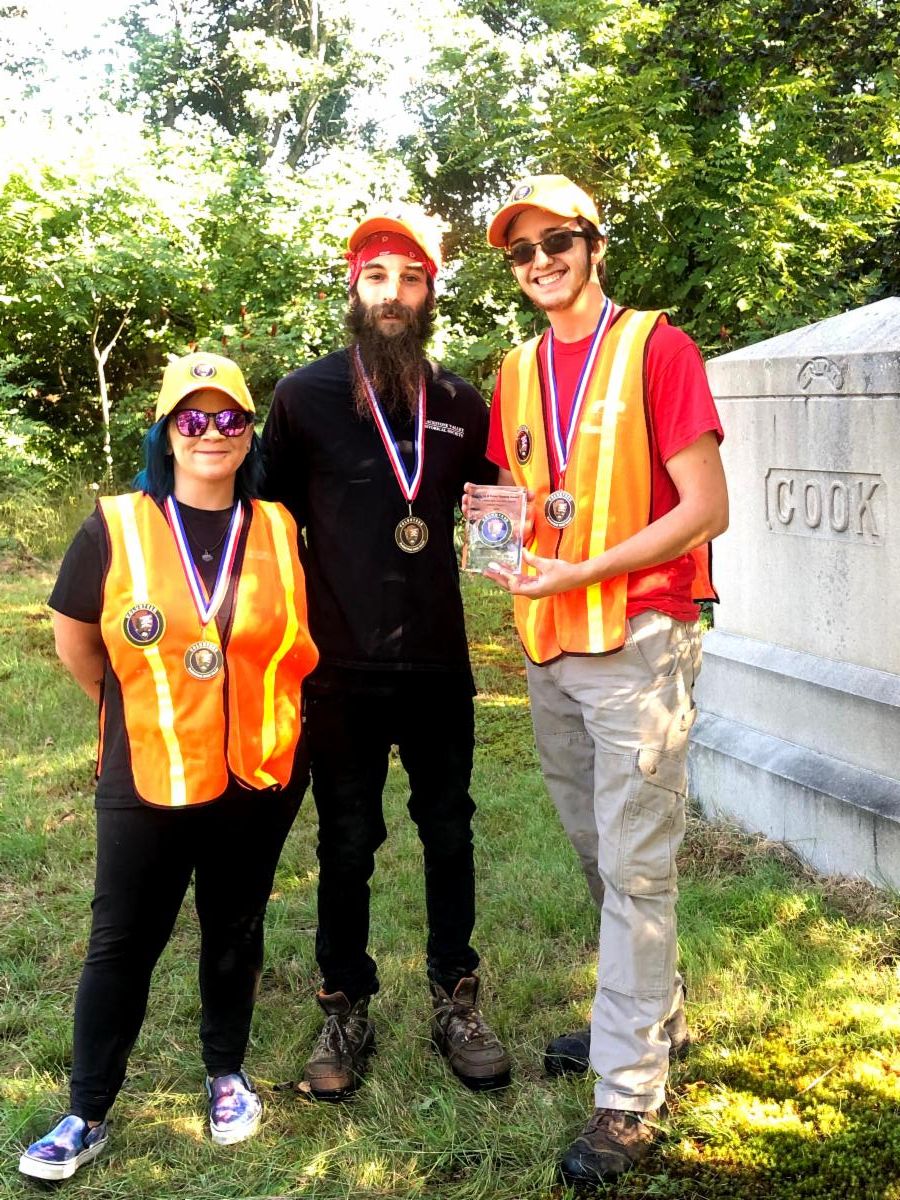 Pictured above (left to right) are BHC Cemetery Conservation Ambassadors (Woonsocket Chapter) Johnelle Bergeron, Greg Duhamel, and Zachary Cote.