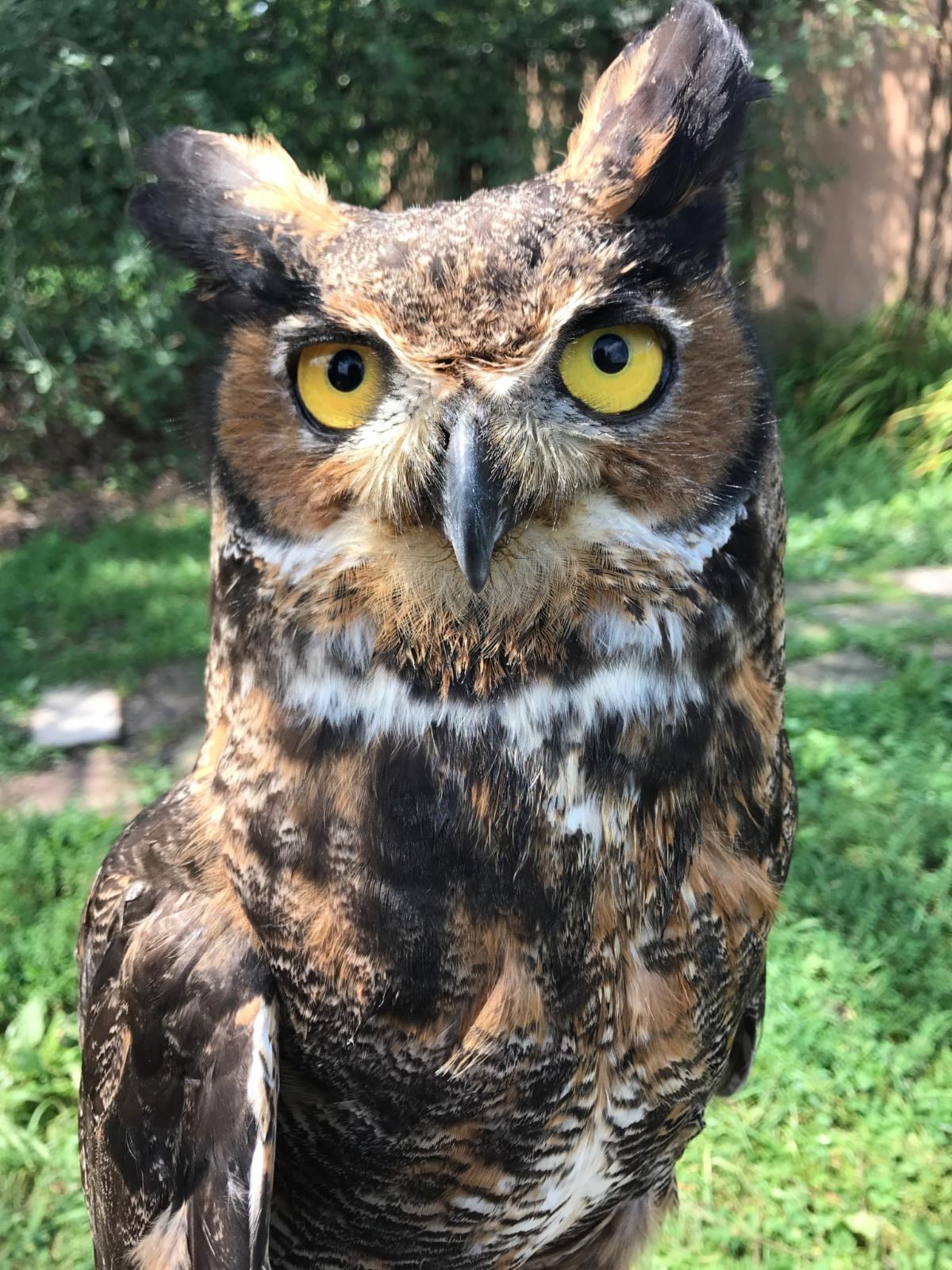 When I think of Great Horned Owls, I think of their position at the top of the food chain - as mighty and fierce hunters. I was lucky to be one of Zeus’ handlers and, knowing the intense power of great horned owls, having such a magnificent predator trust me enough to allow me to be his handler was an indescribable gift. Once Zeus got to know someone as his handler, he was the sweetest bird imaginable.