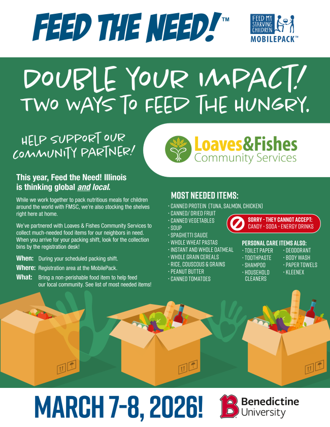 March 8 - Feed the Need (1:30-3:30 pm at Benedictine University, Lisle)