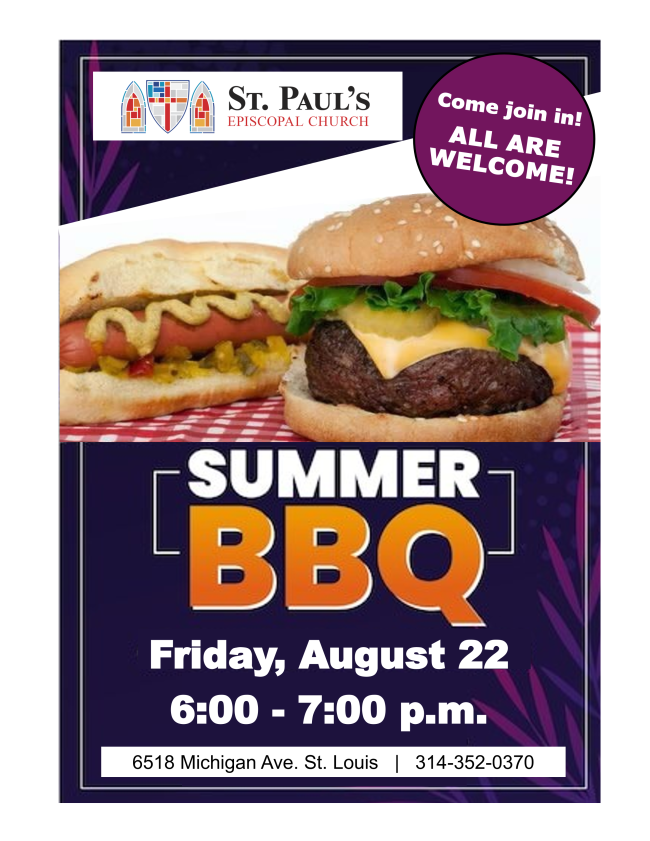 If you haven't attended our BBQ yet this summer, plan on being part of the August 22 event. Your help and extension of hospitality to our neighbors is always appreciated!
