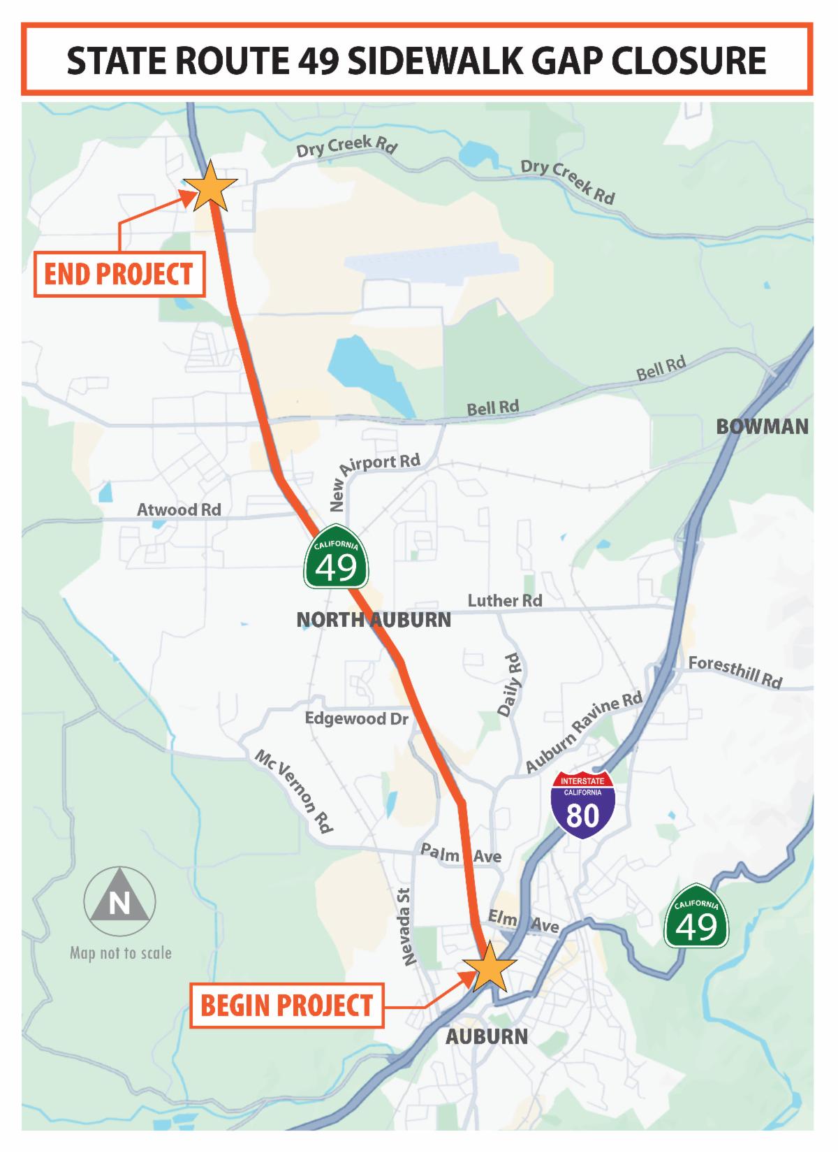 Upcoming work includes construction of nearly 10,000 feet of new sidewalks, curb ramps, multiple crosswalks across SR 49 between Interstate 80 and Dry Creek Road and the addition of a pedestrian bridge over Rock Creek.