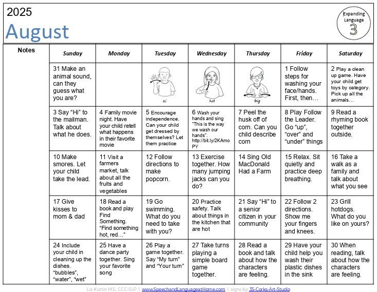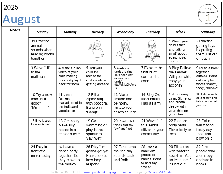 ECI Monthly news & updates | | Early Communicator Calendar | | | Expanding Language Calendar | | |