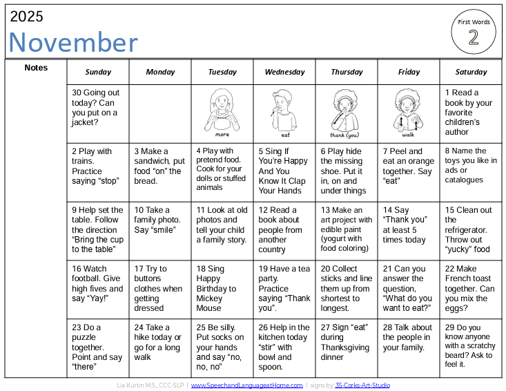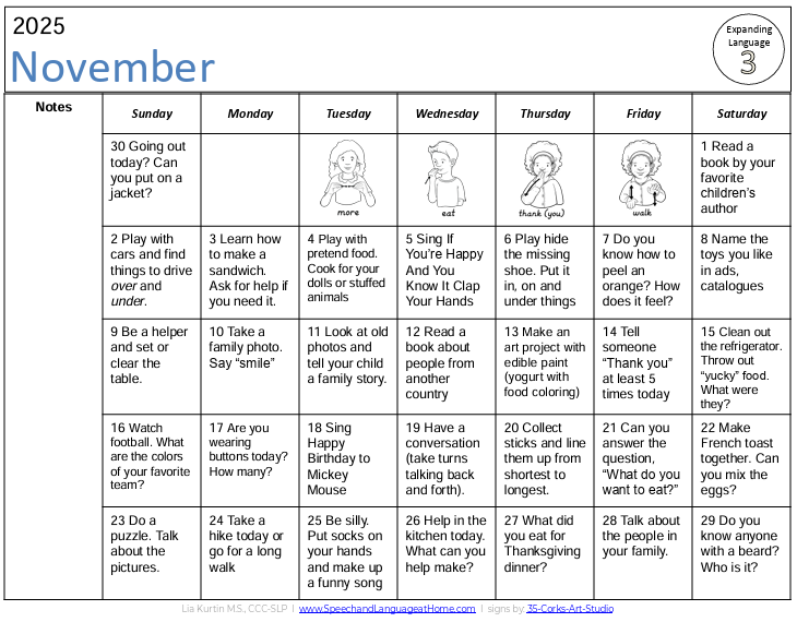 ECI Monthly news & updates | | Early Communicator Calendar | | | Expanding Language Calendar | |