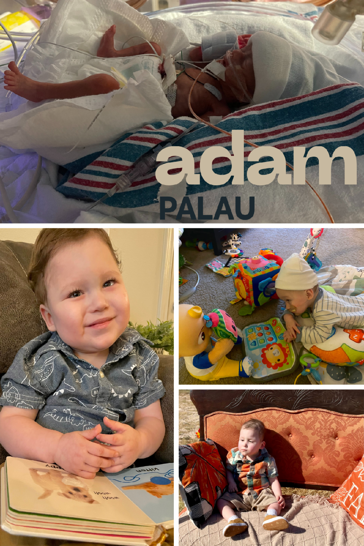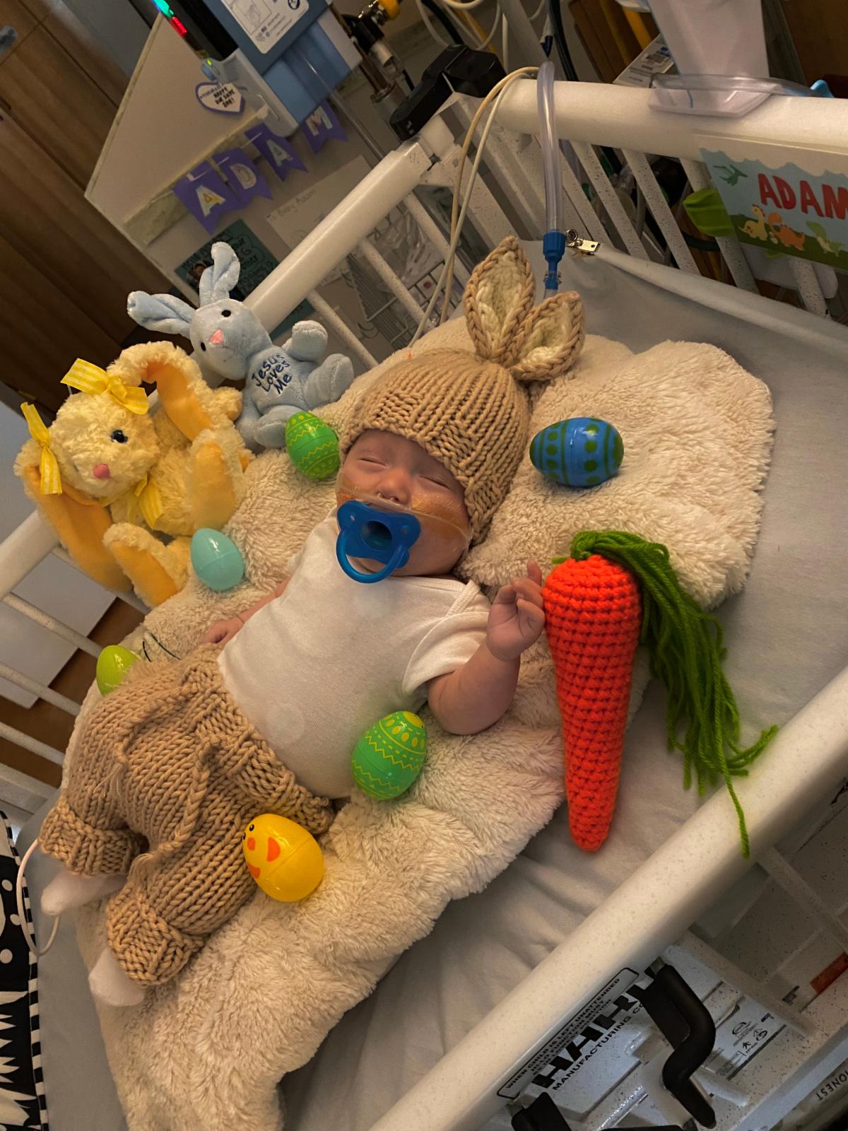 Just a couple of weeks after birth, Adam became very sick in the NICU. Doctors told us he likely wouldn’t make it through the night multiple times, but Adam proved them wrong. His tiny body fought hard and overcame the infection, though he still had a long NICU journey ahead. After 4 procedures, many challenges with his lungs, and one major surgery later, he finally came home after 162 days in the NICU.