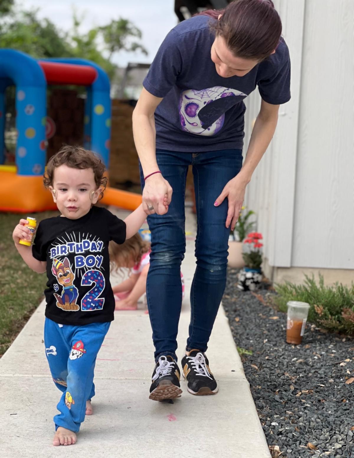 | | We slowly added speech and physical therapy to our weekly visits as Benjamin was also having eating difficulties and had been having issues with silent reflux and aspirations. He slowly was able to gain the ability and interest to start solids through our amazing speech therapist and her tireless efforts with our sweet boy! She too became like family to us! He started gaining the ability to drink from a sippy cup, drink with a straw, use a fork and spoon and has been able to start feeding himself unassisted. His language skills are developing rapidly, using sentences and being able to speak for himself most of the time now as a 2 1/2-year-old! His physical therapists who have helped him have effortlessly worked with him on his mobility. Our current therapist not only helped him gain the ability and skill set to become mobile by walking and taking steps but has helped give him the confidence to be able to play with his sisters, do things like start, stop, and change directions, work on changing steps on uneven surfaces, jumping, one leg standing, amongst many other things. He has been thriving with his mobility and continues to grow each day because of her work and the progress she has helped our son make.