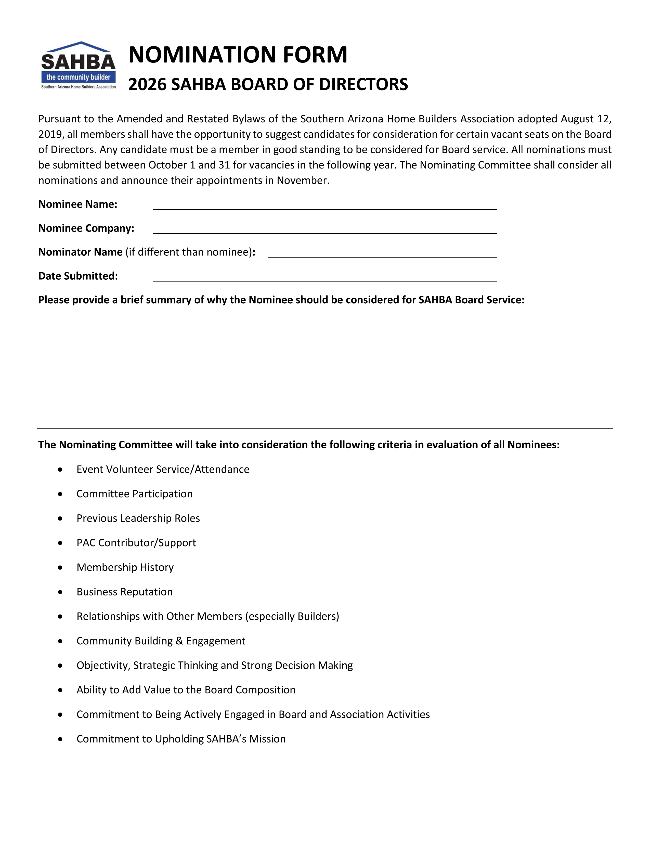 SAHBA played a significant role throughout the update process, submitting multiple letters and formal comments to County staff, the Planning and Zoning Commission, and the Board of Supervisors. This extensive engagement helped shape the final document, including SAHBA’s successful addition of language to Goal 3.A.1 to encourage the preservation of natural open space in those areas subject to the CLS, “and balance the need for new housing development.” This collaborative language, shared with the Coalition for Sonoran Desert Protection, reflects a shared commitment to conservation while recognizing the region’s housing needs. SAHBA appreciates the County’s collaborative approach and looks forward to continued partnership to ensure Pima Prospers guides a thriving and resilient future for our region.