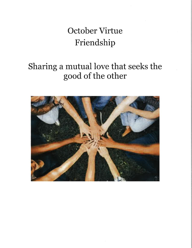 As September closes, we celebrate the progress, friendships, and growth that have already taken root. In fact, friendship is our virtue for October. Thank you for entrusting us with your children and for walking alongside us in their learning and faith journey. The best is yet to come!