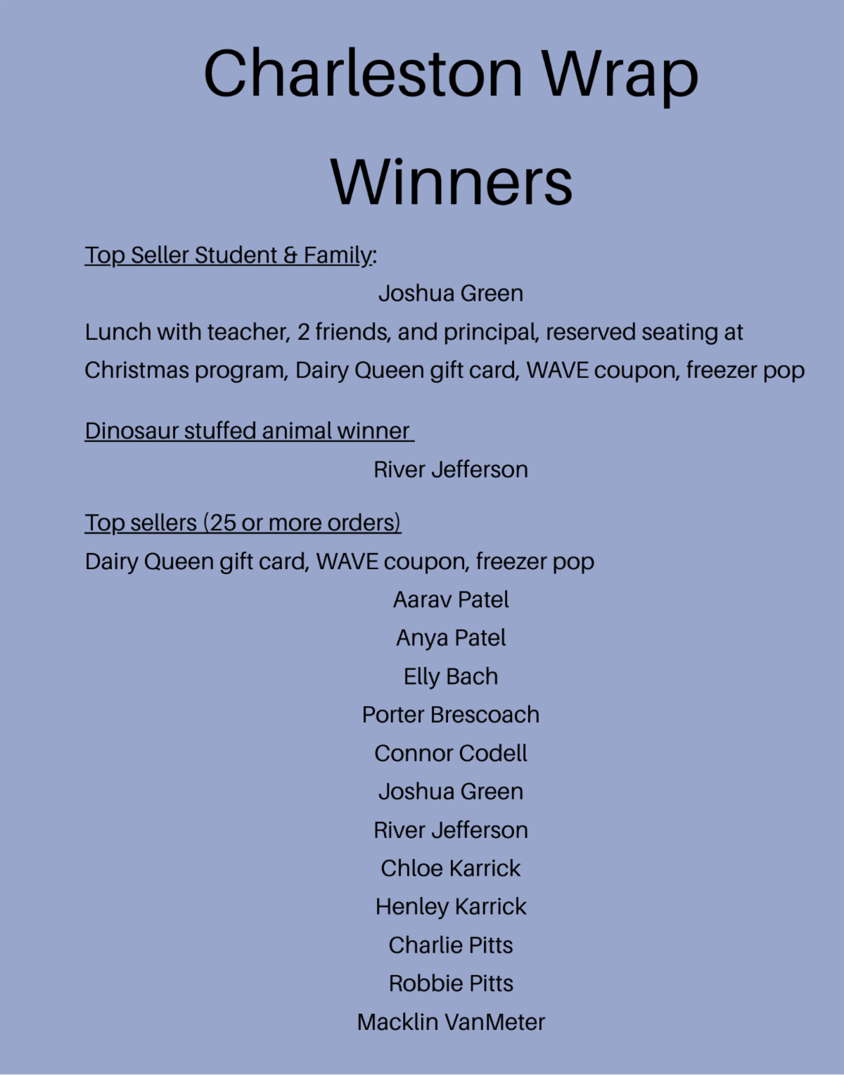 For homerooms in which the entire class signs up, a frozen treat awaits them too.
