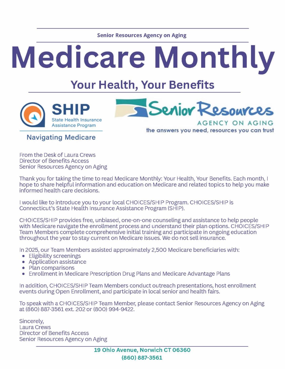 Eastern CT Agency of Aging - Senior Resources | 19 Ohio Avenue Suite 2 | Norwich, CT 06360 US