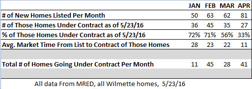 This spring, 256 homes came on the market in Wilmette as new listings! February and April saw the most buyers writing contracts during those months. For sellers, February listings performed well. 71% are now under contract and it took an average of just 23 days. To see updated Home Sale Stats (Sales Price, Supply, Days on Market) in your area including specific elementary school and neighborhood stats please