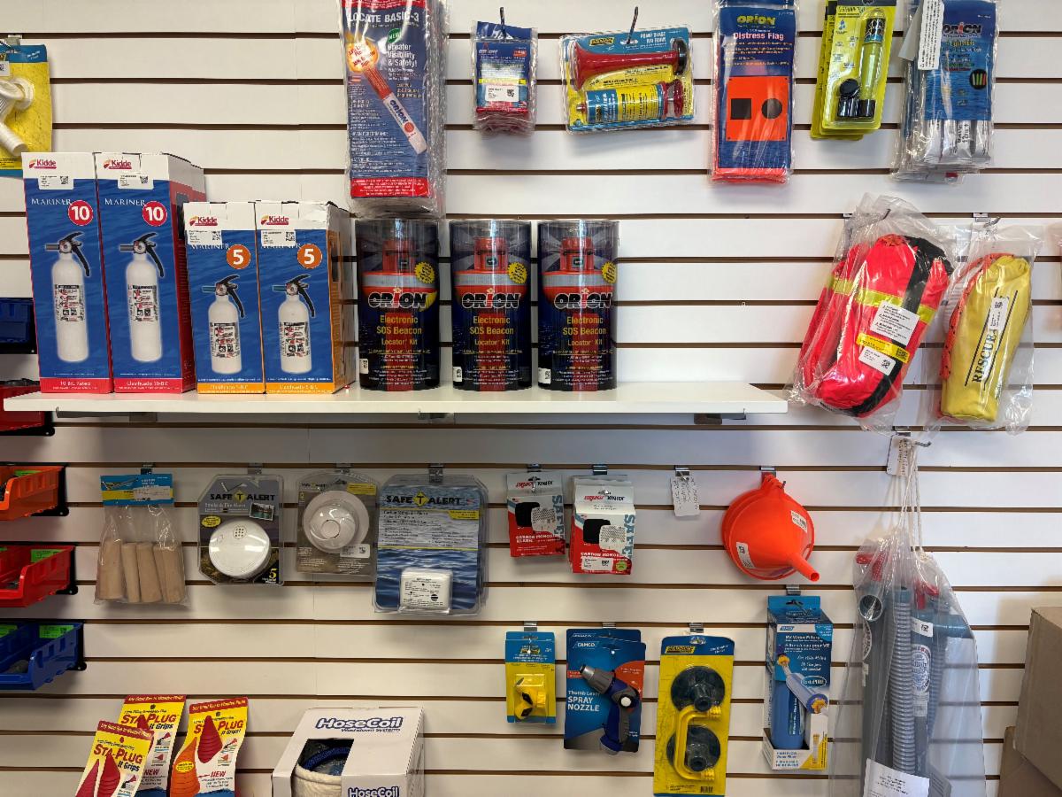 We're fully stocked with flares, throwables, fire extinguishers, and other emergency equipment.