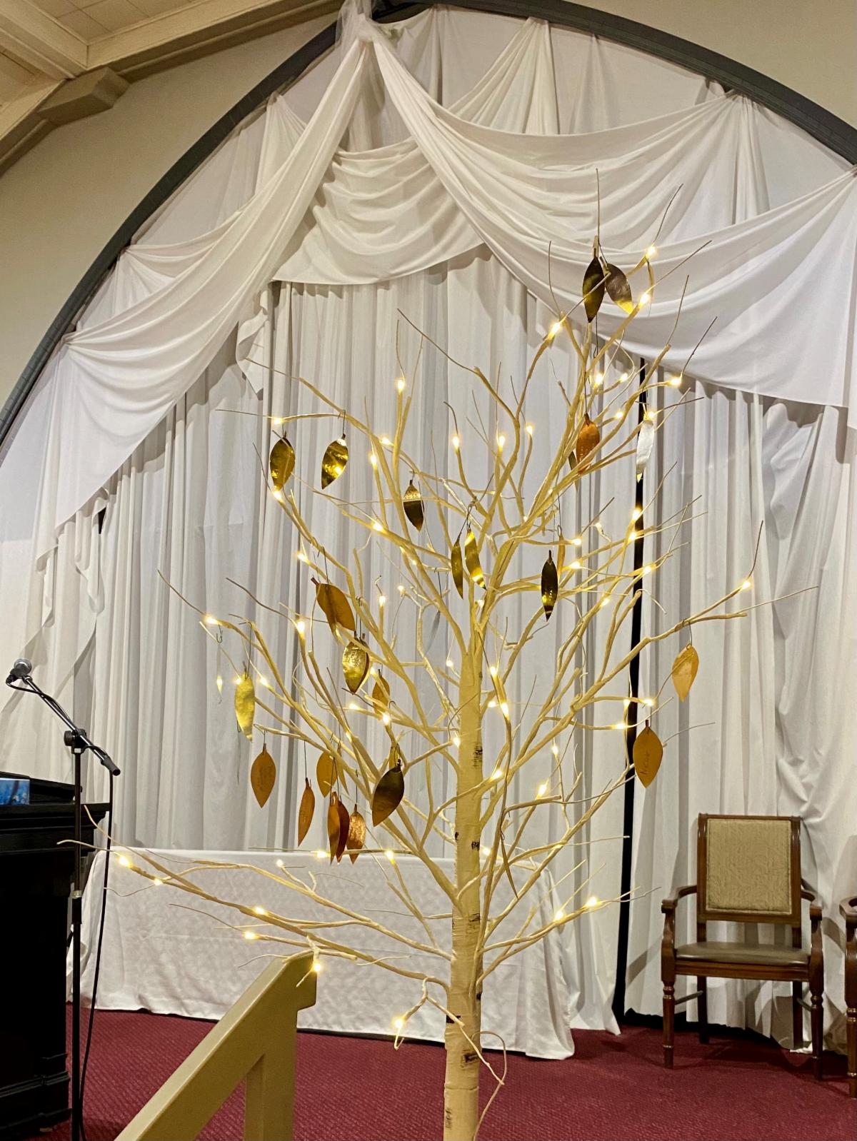 A cherished tradition was upheld with the placement of leaves—participants were invited to write the names of their loved ones on paper leaves and place them on a lighted birch tree branch as part of the evening's tribute. After the service, many enjoyed a comforting cup of coffee and shared time with others.
