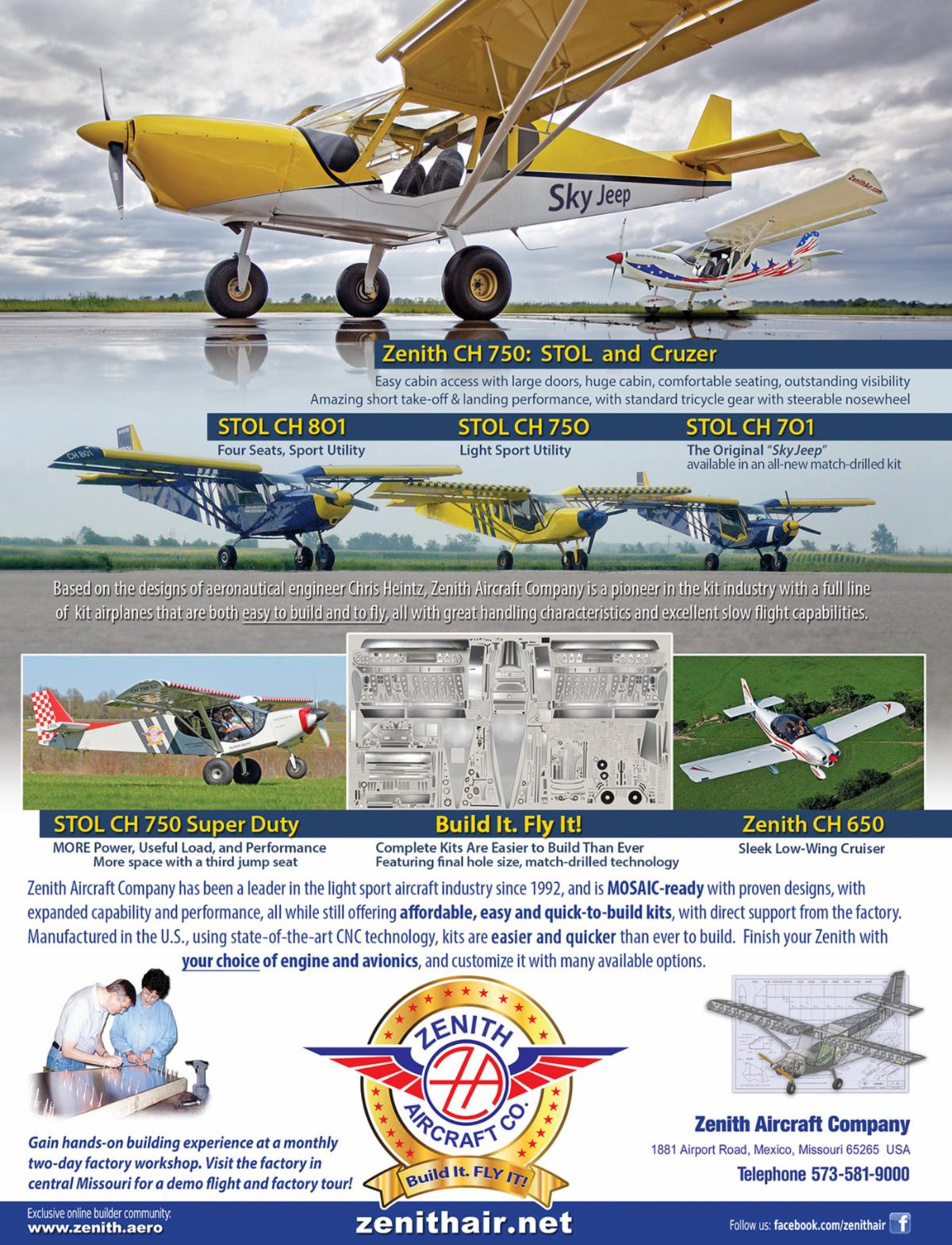 Zenith Aircraft's Sebastien Heintz and Roger Dubbert will present a live webinar as part of the EAA Homebuilders Week, titled Zenith Aircraft Kits & Plans, on Friday, January 30th, 2:30 - 3:45 p.m. CST, to share news and updates from Zenith Aircraft, and details on available kit aircraft designs from Zenith, the different ways to build (ie. kit or plans-only), and the different ways to finish them (engine and avionics choices, etc.).