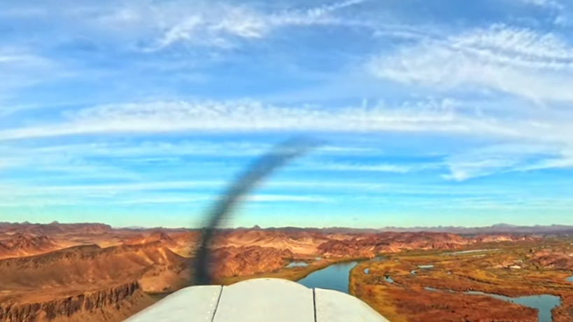 | | Larry Nelson flies his low-wing Zenith over the Colorado River / Yuma, Arizona. | |