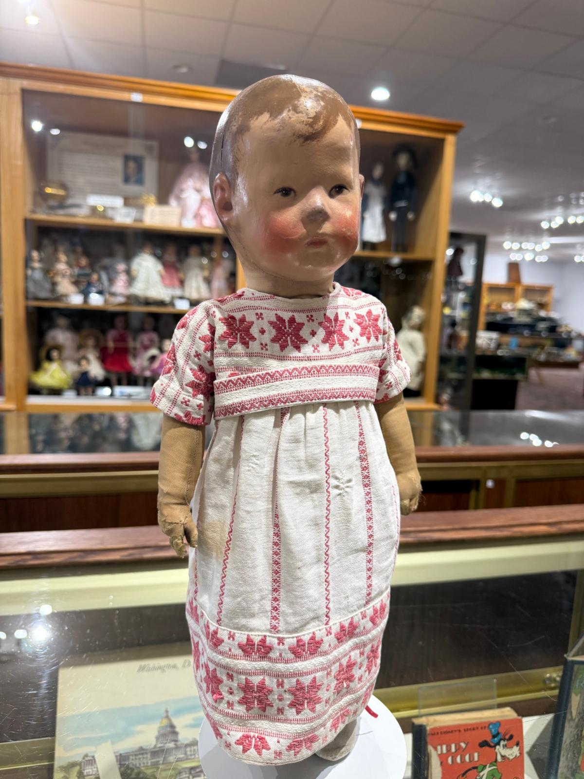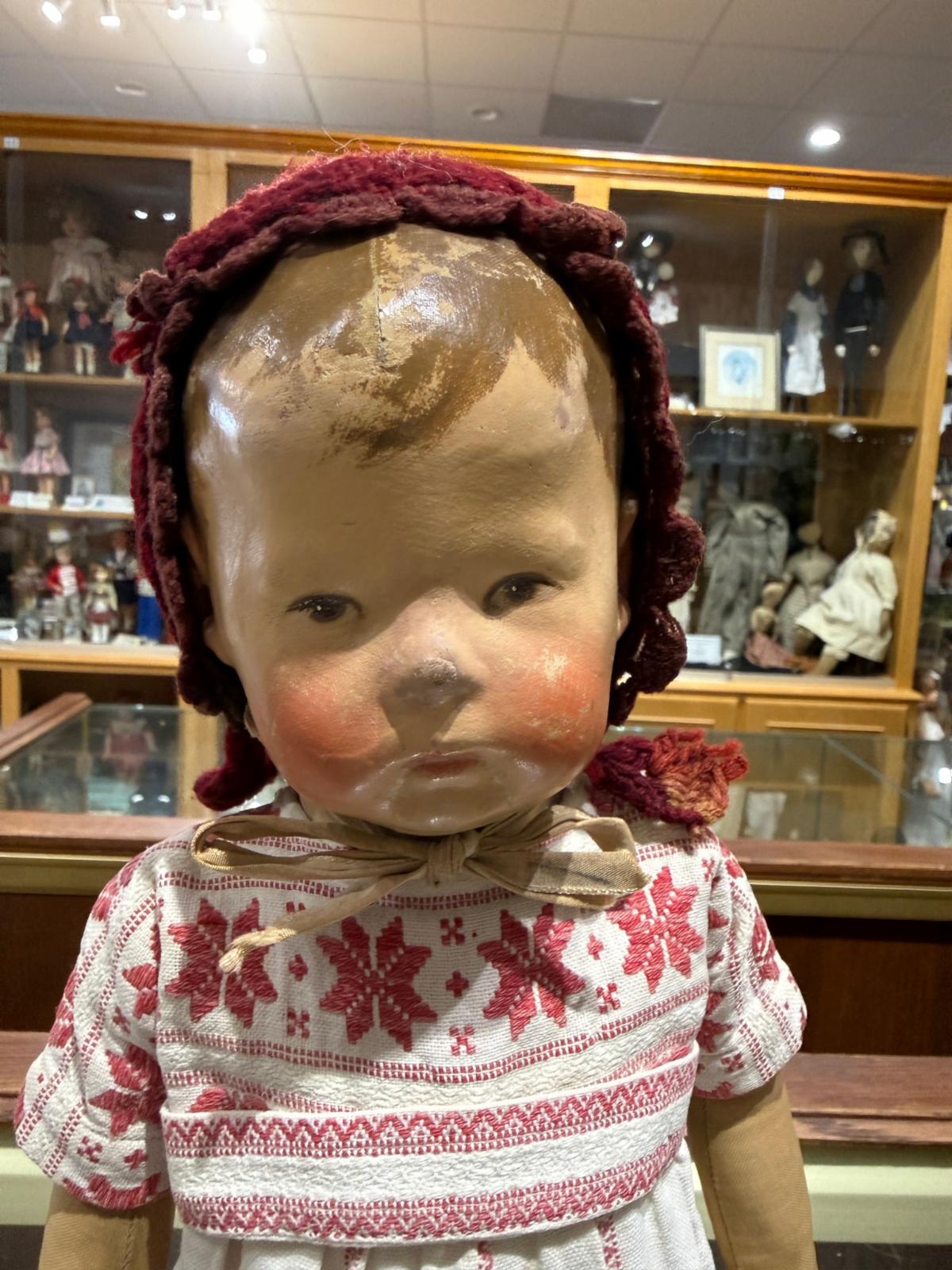 - One of the earliest patented cloth dolls known with three-dimensional handmade look as a standout feature during a time when wood, papier mache, and bisque dolls were popular