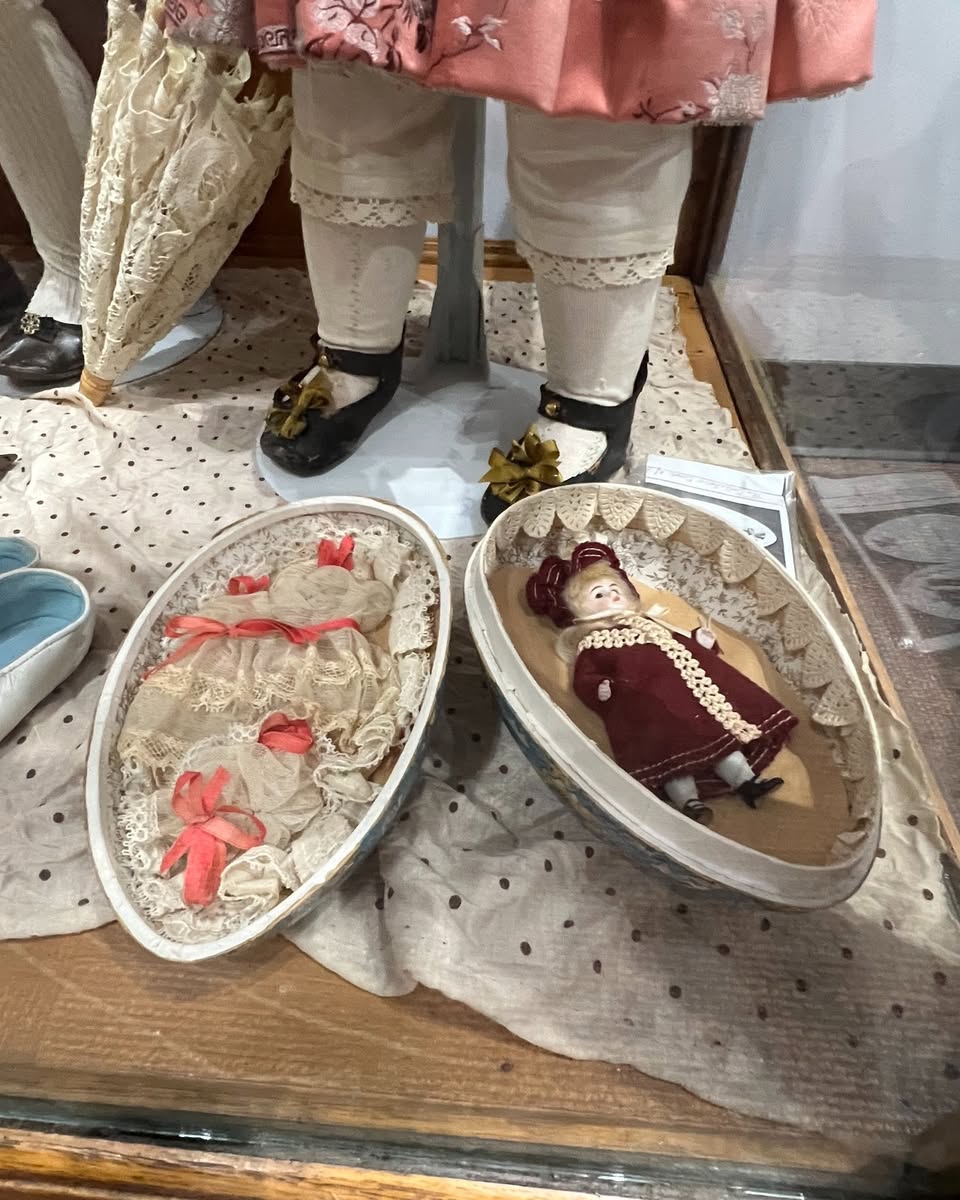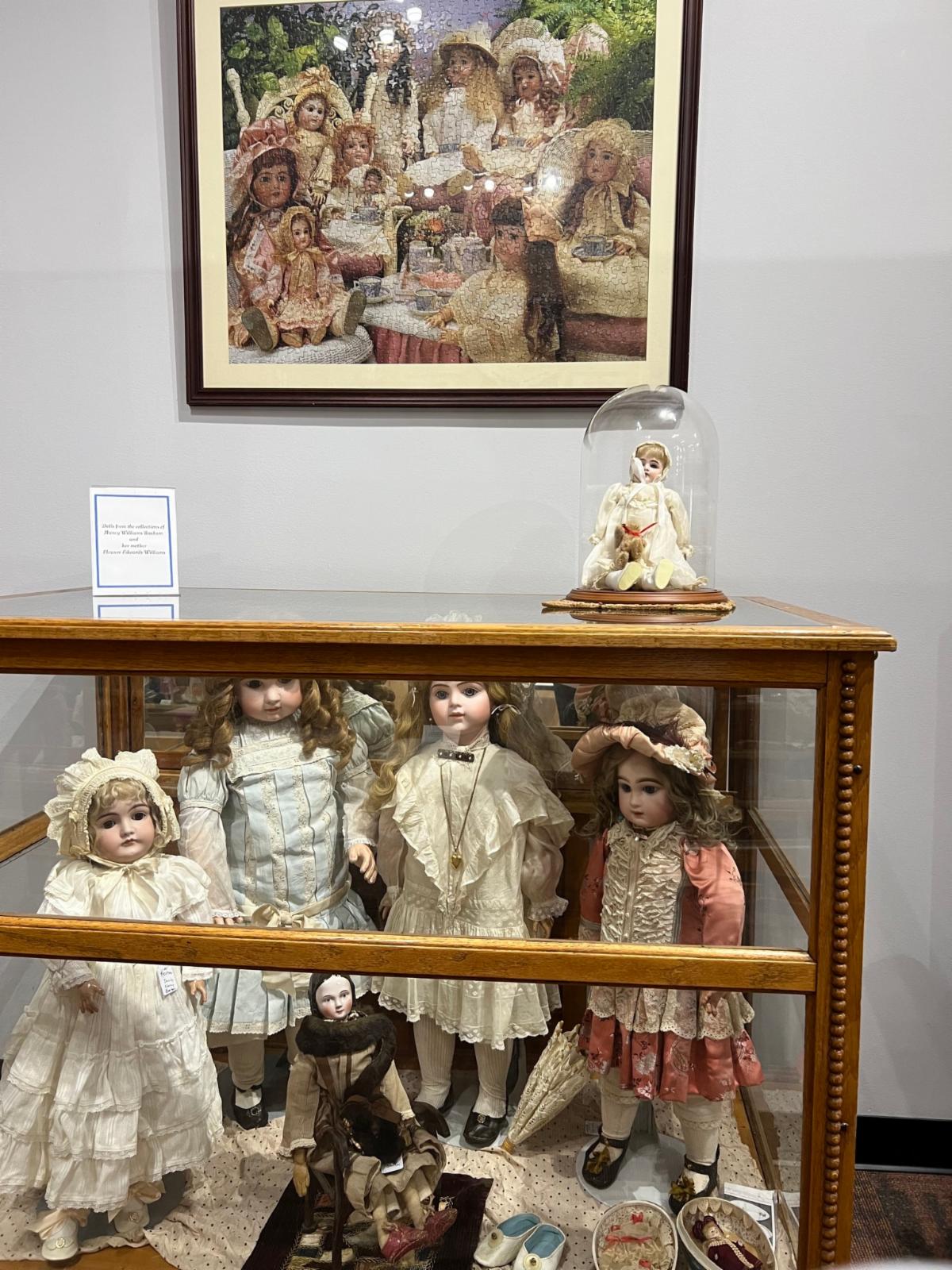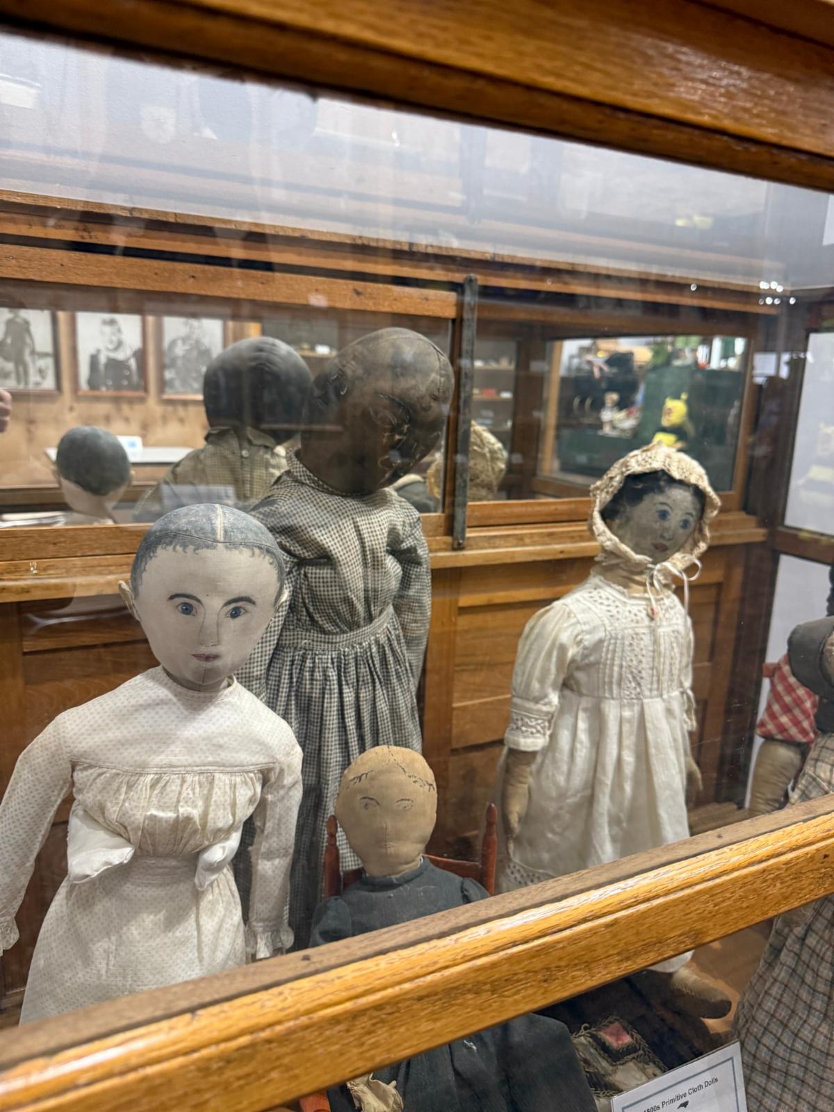 Take a look at these primitive dolls from the 1800s! The two large dolls in the back were donated by Latta Foundation, and the other dolls were donated by Martha Saban.