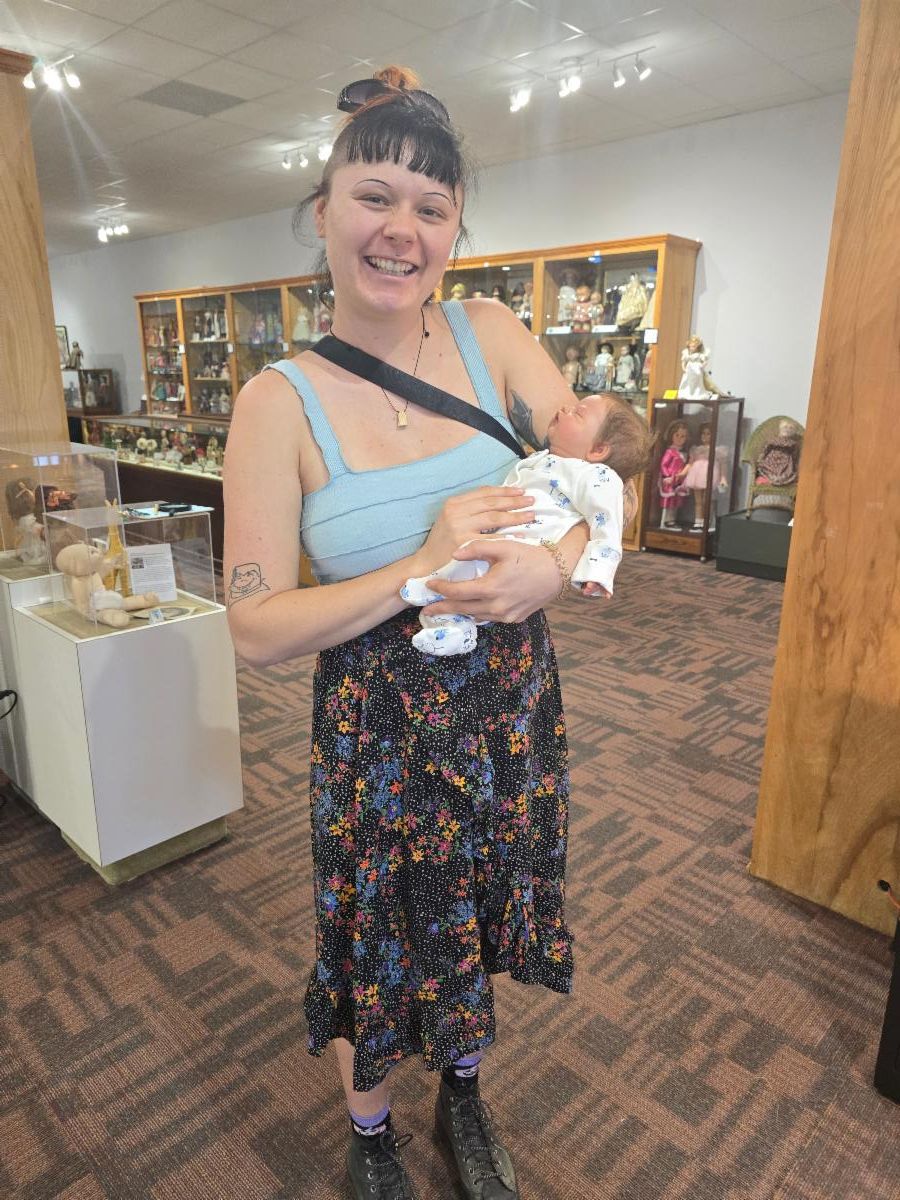 | These museum visitors are from Yakutsk, Russia - the coldest city on earth! They've relocated since to Raleigh, NC. | And a museum visitor who is 19 weeks pregnant got the chance to hold one of the museum's reborn babies. Adorable! | |